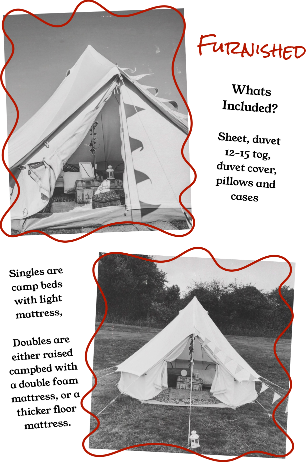 Bell Tent Sizes FURNISHED (Incl Bedding - 2/3 nights)